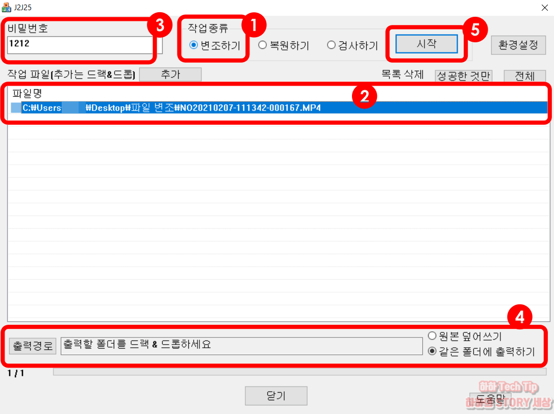 5. 설정이 모두 마치고 시작을 누르면 j2j 파일로 변환이 끝난다.