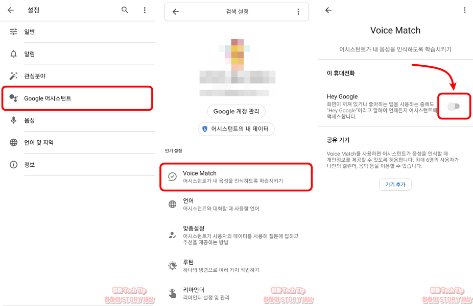 7. Hey google을 클릭해 비활성화한다.