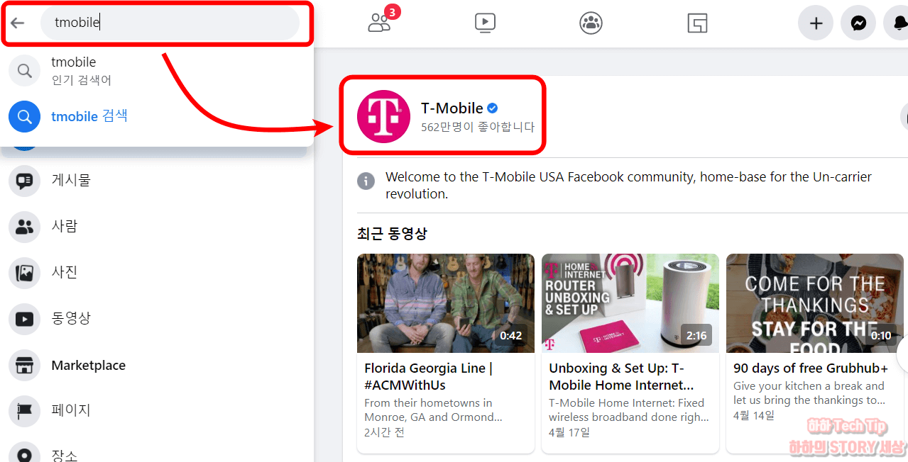 2. 검색창에서 tmobile 입력 후 티모바일로 이동한다.