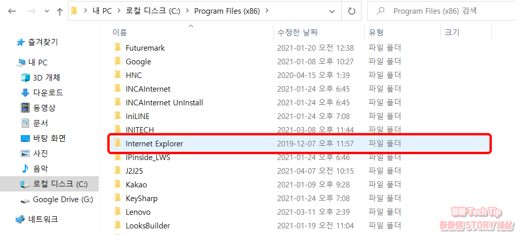 3. Internet Explorer 폴더를 선택한다.