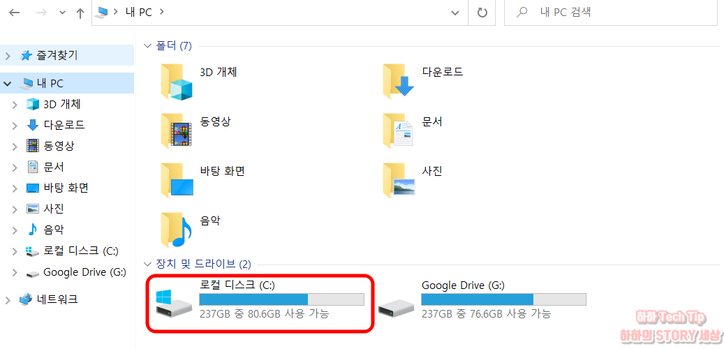 1. 내 PC로 이동 후 윈도우 OS가 설치된 드라이브를 선택한다.