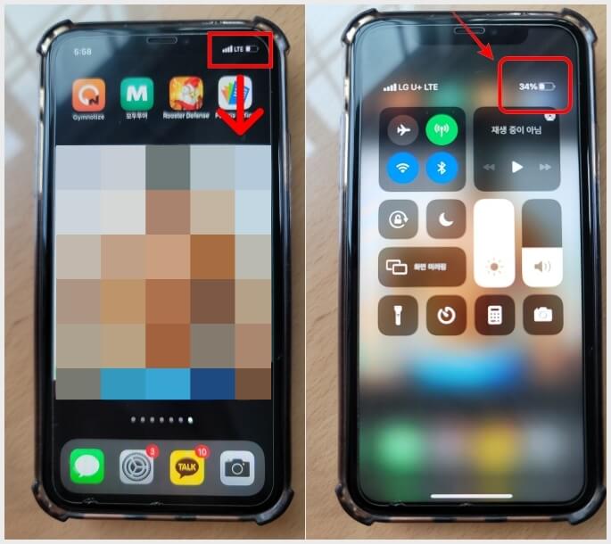 배터리 모양이 보이는 부분을 아래로 드래그하면 화면에 현재 남은 배터리 잔량이 퍼센트로 표시된다. 하지만 이 방법은 불필요한 동작을 반드시 해야 한다는 단점이 있다.