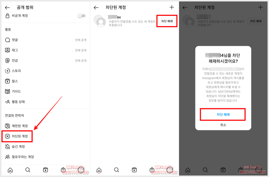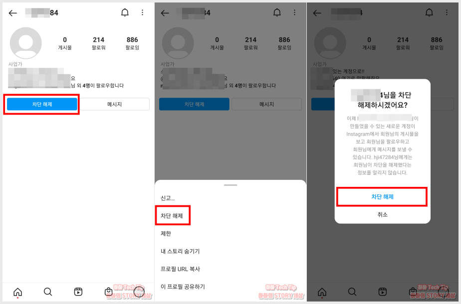 인스타 차단 후 막기를 한 이유가 사라져서 차단 해제를 할 때는 다음과 같은 순서로 풀기를 하면 된다.