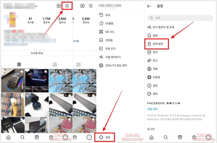 2. 설정에서 공개범위로 이동한다.