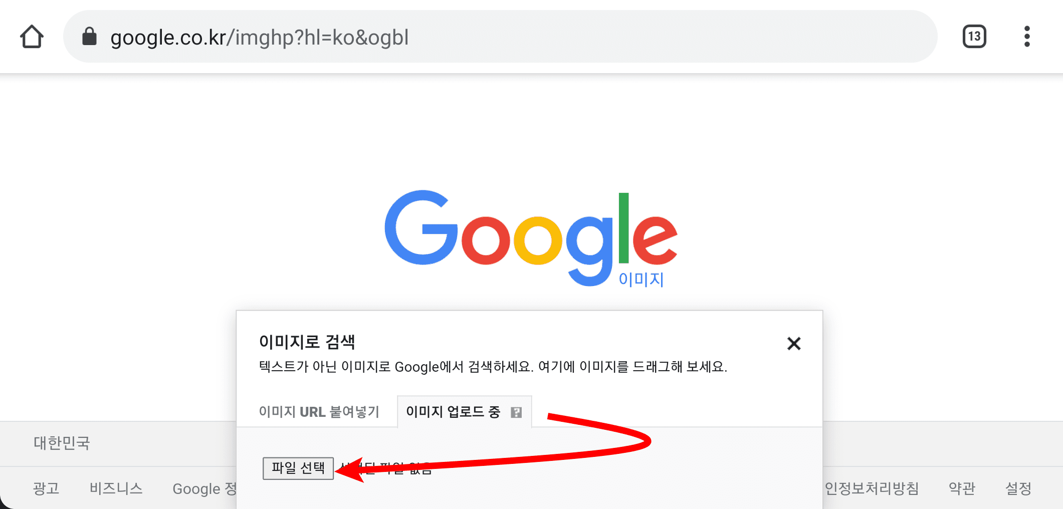4. 스마트폰 갤러리 사진을 검색하고 싶다면 이미지 업로드 항목 선택 후 파일 선택으로 이동한다.