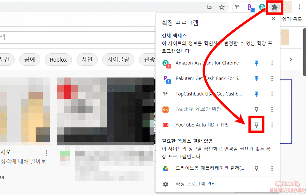 3. 확장프로그램 선택 후 고정 버튼을 눌러 창에 표시한다.