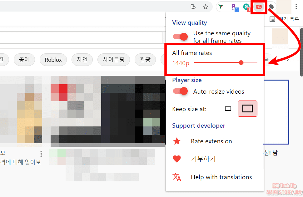 데스크탑 환경에서는 유튜브 화질 고정을 위해 크롬 확장 프로그램을 사용하며, 설치 및 사용 방법은 다음과 같다.