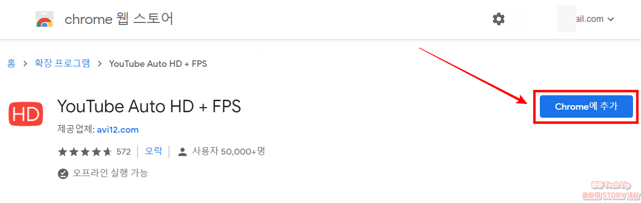 2. 크롬 확장 프로그램에서 YouTube Auto HD+ FPS를 설치한다.