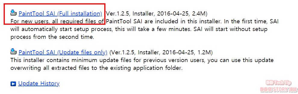 2. PaintTool SAI(Full installation) 1.2.5 버전을 선택한다.