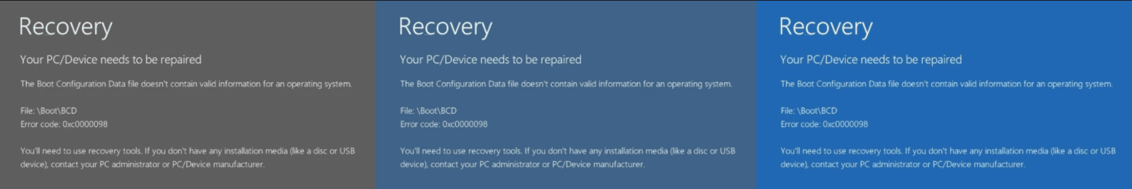 컴퓨터 부팅 중 0xc0000098 에러가 나타나고 윈도우 10 진입이 되지 않는 현상이 나타나서 사용을 못 하는 경우가 발생한다. 윈도우 바탕화면에서 에러가 나타난다면 오류를 잠시 무시하고 다른 일을 할 수 있겠지만 이 경우 컴퓨터 사용 자체가 불가능하기에 많은 불편을 초래한다.