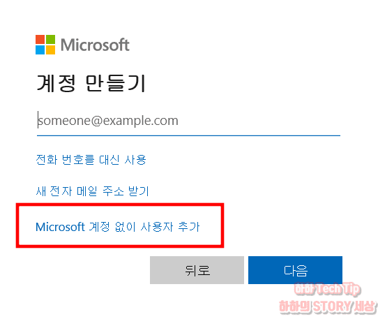 6) 마이크로소프트 계정 없이 사용자 추가를 누른다.
