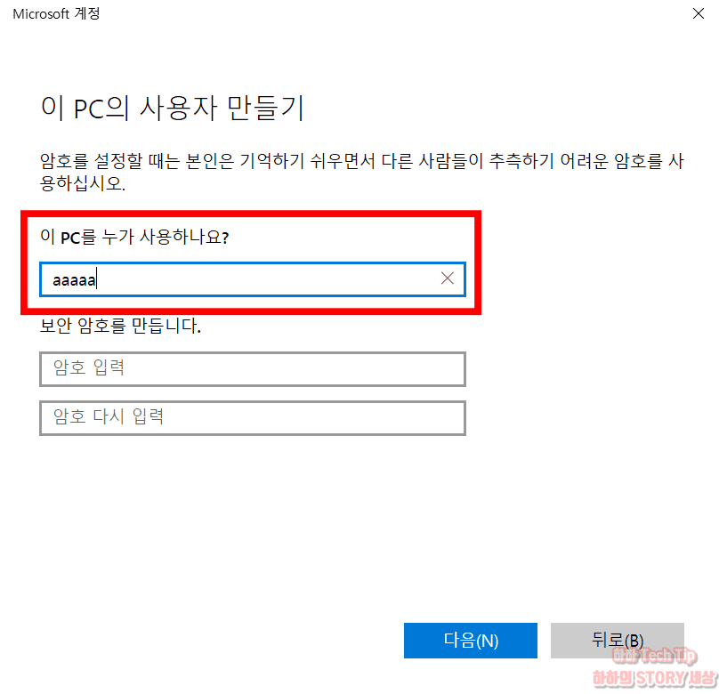 7) 사용자 이름을 영어로 입력 후 다음으로 넘어가면 계정 생성이 완료된다.