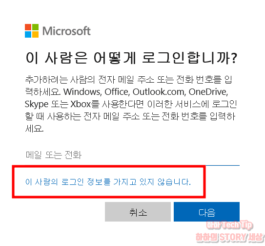 5) 로그인 화면에서 '로그인 정보를 가지고 있지 않습니다' 선택한다.