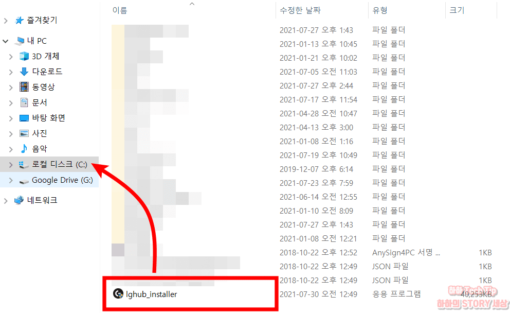 1) 로지텍 G 허브를 다운받은 후 C 드라이버로 복사한다.