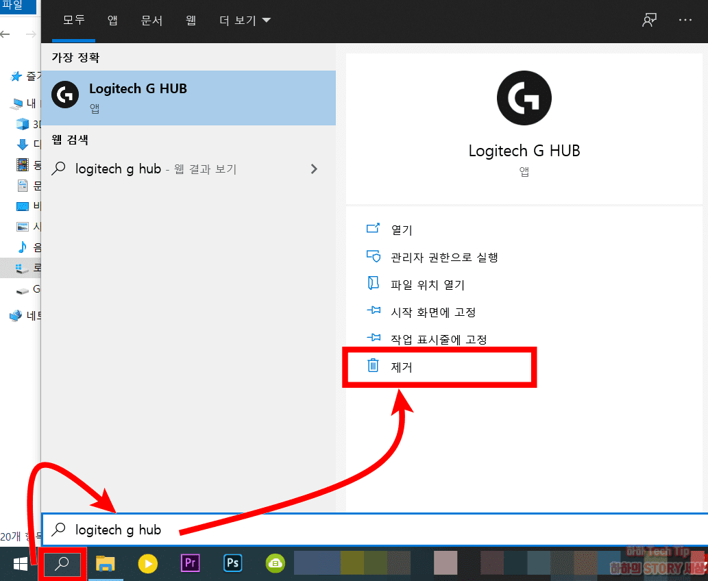 - 윈도우 검색창에서 logitech g hub 입력한다.