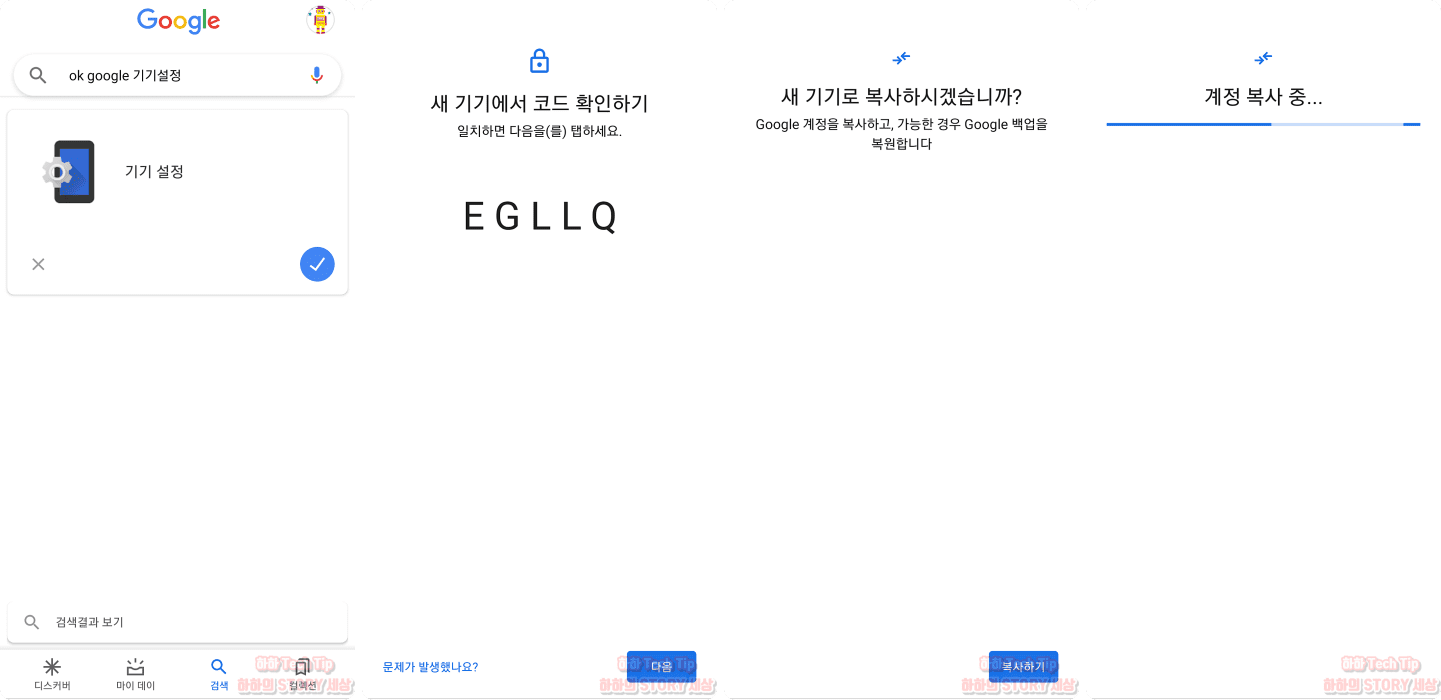 2) 구글 설정을 위해 스마트폰을 이용해 구글 앱 실행 후 검색창에 'ok goole 기기 설정'을 입력하고 기기 설정 → 시작하기 → 코드화면이 나오면 Tivo 4K 화면과 동일한지 확인 후 다음 단계로 이동한다.