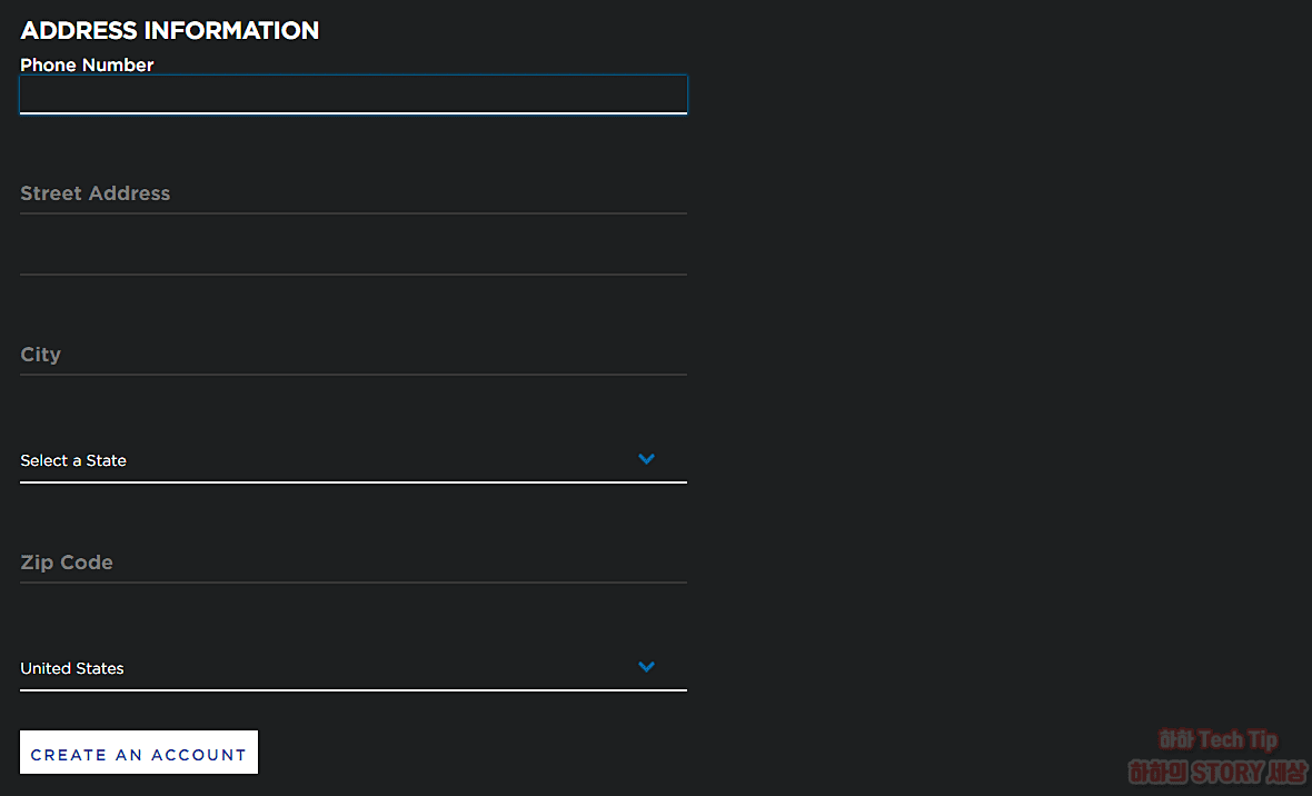 3) 계정 생성을 위해 이메일 주소, 패스워드, 주소 등을 입력한다. 이때 주소는 미국 주소로 입력해야 하는데, 배송대행지 주소 입력 방법을 참고해 자주 사용하는 아무 배대지 주소를 입력하고 계정 생성 버튼을 누르면 기기 활성화가 완료된다.