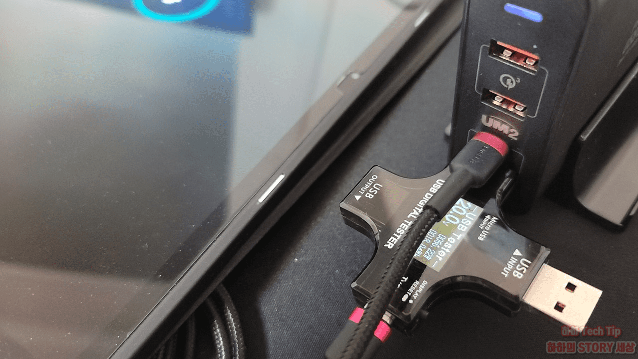 고속충전기를 사용하면서 가장 고민했던 부분은 충전기와 연결된 접지 코드 유무였다. 일부 충전기 사용 시 노트북으로 전류가 흘러 불편했던 경험이 있었지만 UM2 고속충전기 사용 시 전류가 흐르는 증상없이 사용이 가능하다.