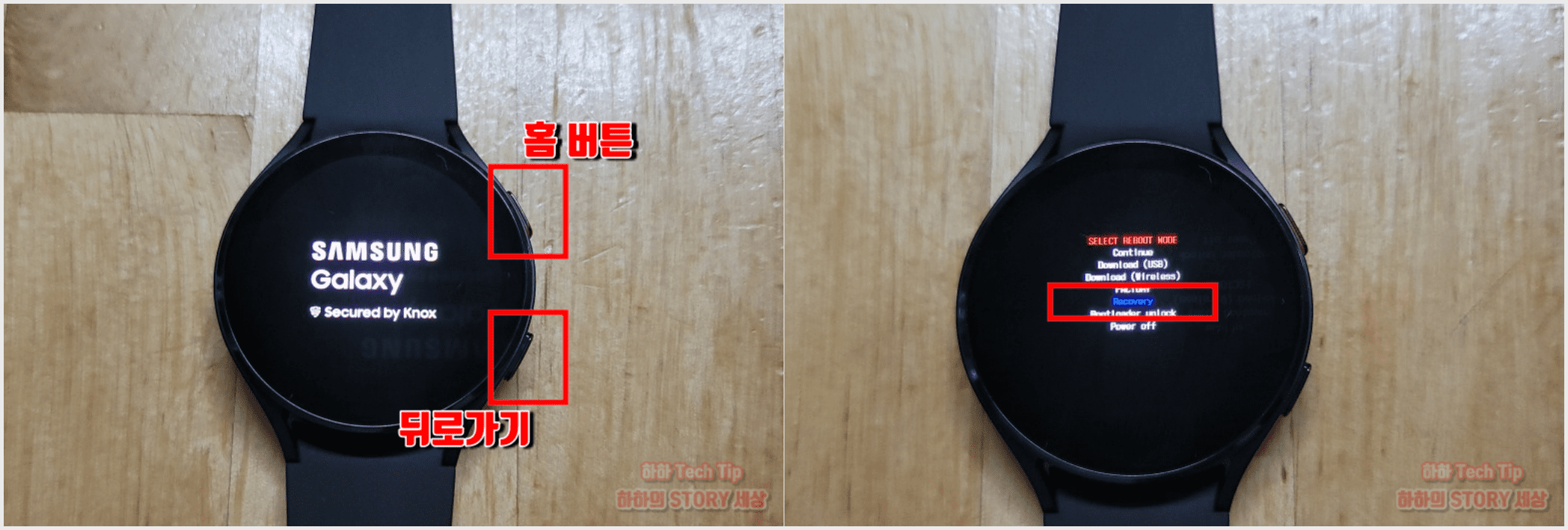 3) Select Reboot Mode에서 홈 버튼을 이용해 Recovery 항목으로 이동 후 홈 버튼을 길게 누른다.