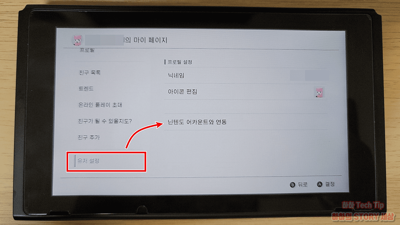 1) 이용권을 등록할 유저 선택 후 유저설정으로 이동하고 닌텐도 어카운트와 연동을 선택한다.