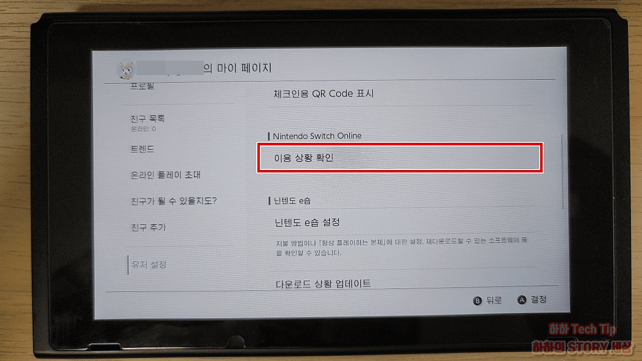 4) 닌텐도 스위치 온라인에서 이용 상황 확인을 누른다.