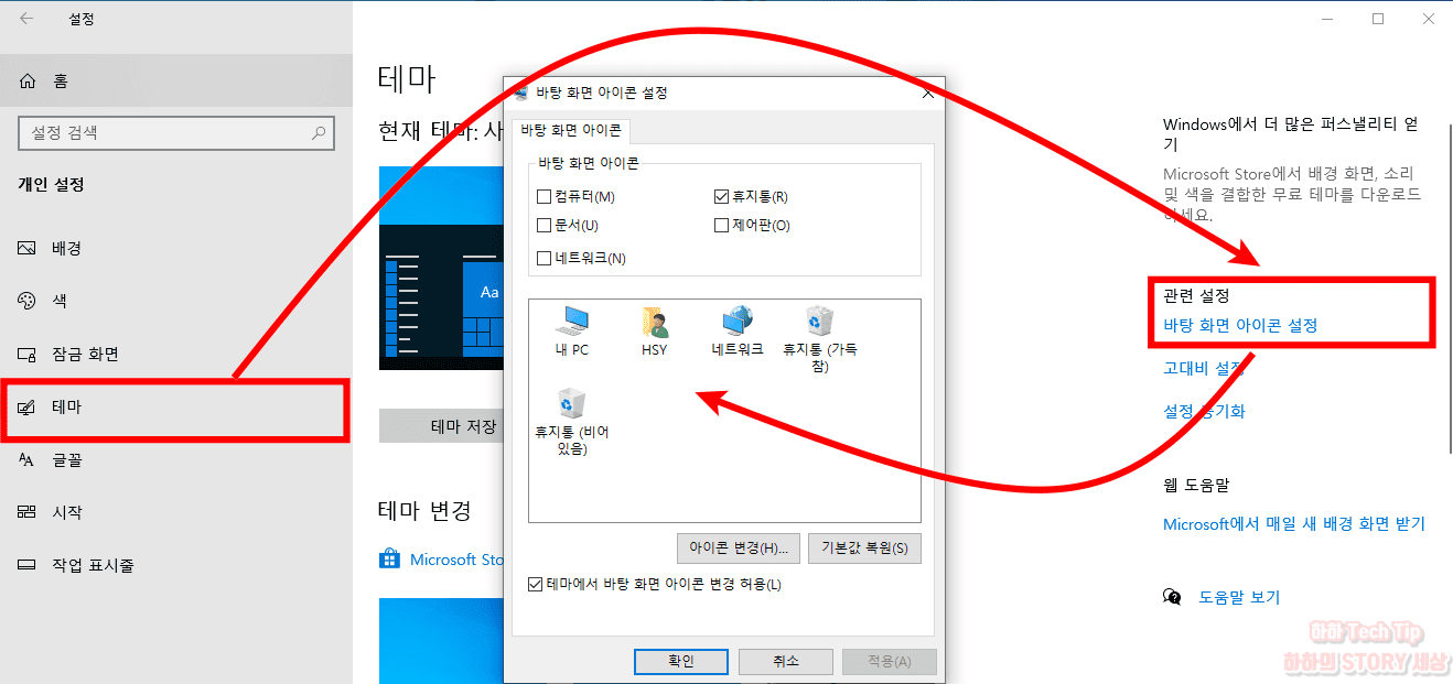 - 바탕화면 아이콘 설정 클릭 후 생성할 아이콘을 선택하고 적용을 누르면 아이콘이 만들어진다.