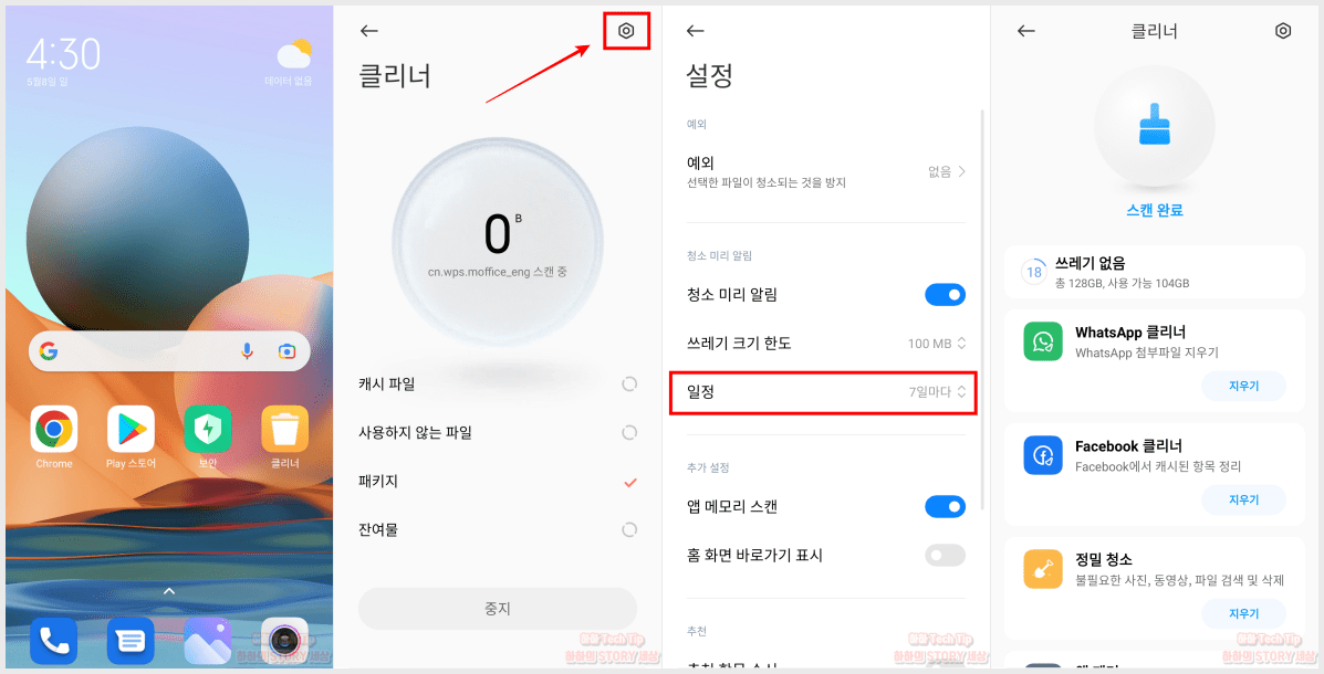 - 청소 미리 알림 항목에서 청소 미리 알림을 활성화하고 일정을 "7일"로 변경한다.